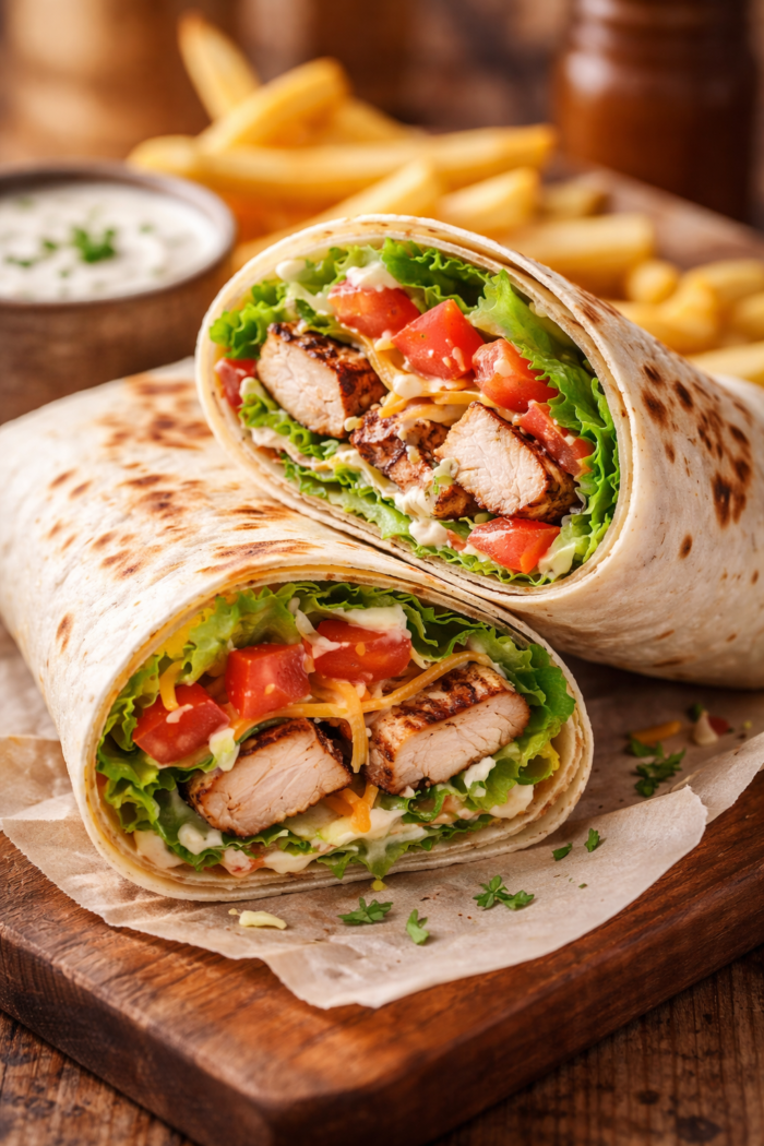 Enjoy a fresh and satisfying bite with the Grilled Chicken Wrap at Peachy Pub and Grill. This flavour-packed wrap features tender, perfectly grilled chicken seasoned for a smoky, juicy taste, wrapped in a soft tortilla with crisp lettuce, ripe tomatoes, and a blend of fresh ingredients that add both crunch and freshness. Each bite delivers a balanced mix of protein and vibrant flavours, making it a great choice for a light yet fulfilling meal. Grilled chicken wraps are loved for their versatility and wholesome appeal, combining grilled meat with fresh vegetables for a delicious handheld option . Ideal for lunch or a quick dinner, this wrap offers a perfect combination of taste, convenience, and quality that keeps you coming back for more.